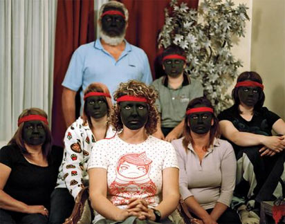 She photographed members of her light-skinned family who had blackened their faces, an allusion to early movies where white actors had blackened their skin to play Aboriginal people.